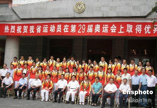 9月11日下午,在第29屆奧運會上摘金奪銀及獲得優異成績的四川運動員、教練員,受到中共四川省委、省政府的隆重表彰,金銀銅及前8名的運動員得到了50萬元至1萬元不等的獎金。 中新社發 楊杰 攝