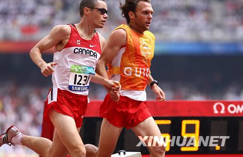 加拿大選手賈森·鄧克利(左)在領跑員的引導下進行比賽。新華社記者 張燕輝 攝