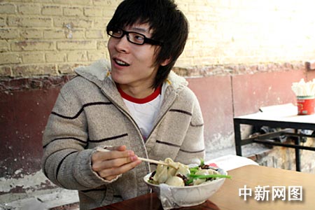 嘯坤最愛(ài)喜歡去的板兒面店絕對(duì)讓人意想不到,不起眼的小門臉,甚至沒(méi)有屋子,只用塑料布撐起一片當(dāng)作屋頂,剩下的就是幾張破舊但還算干凈的桌椅和簡(jiǎn)易的廚房了。嘯坤樂(lè)呵呵的讓大家坐下后自己過(guò)馬路買燒餅去了,他說(shuō)對(duì)面的燒餅一塊錢四個(gè),又便宜又好吃,再配上兩塊錢一碗的板兒面,那簡(jiǎn)直就是人間美味了!