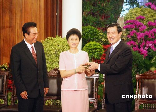 圖:馬英九贈送陳云林夫人琉璃飾品