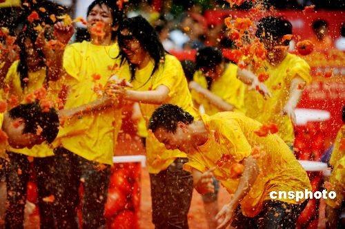 趣圖:廣東東莞上演萬人“番茄大戰”
