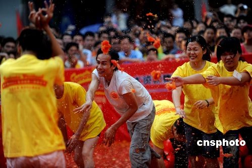 趣圖:廣東東莞上演萬人“番茄大戰”(2)
