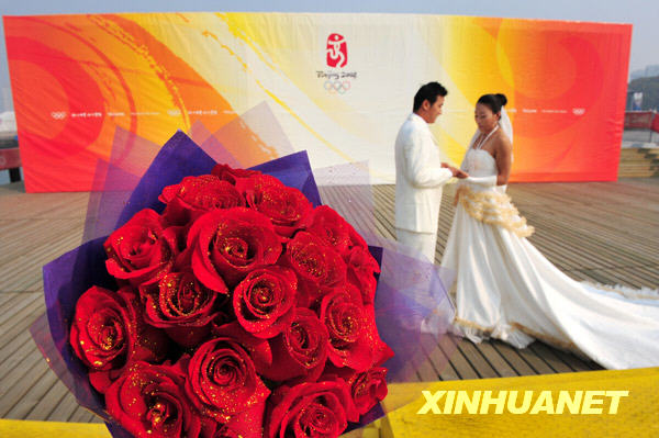 圖:奧運帆板冠軍殷劍奧帆中心拍婚紗照