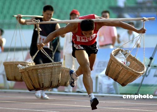 圖:農(nóng)運(yùn)會(huì)賽場(chǎng)上運(yùn)動(dòng)員“忙運(yùn)糧”