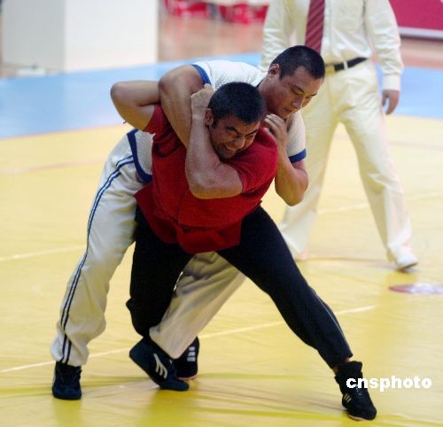 圖:農(nóng)運(yùn)會(huì)摔跤賽場(chǎng)激戰(zhàn)正酣