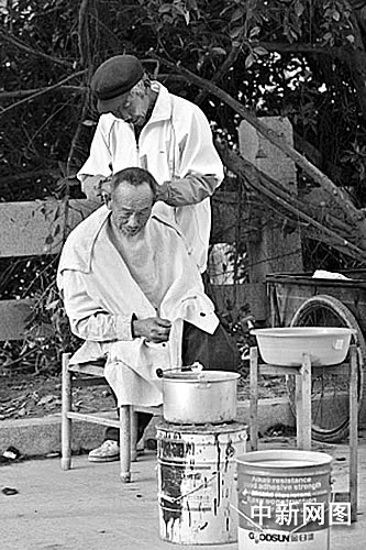 中新網(wǎng)晉江2月20日電 (秦越 )在上個世紀五六十年代,“剃頭挑子”很流行,就是一個理發(fā)師傅挑著擔子搖著鈴鐺走街串巷,擔子一頭是洗臉盆架和一個生著火的爐子,另一頭是一條長板凳,專門給人理發(fā)。近日,記者在閩南僑鄉(xiāng)晉江市區(qū)蓮溪路上就遇見一個這樣的“剃頭”師傅:和以前不一樣的是長板凳換成了靠背椅,扁擔換成了三輪自行車。