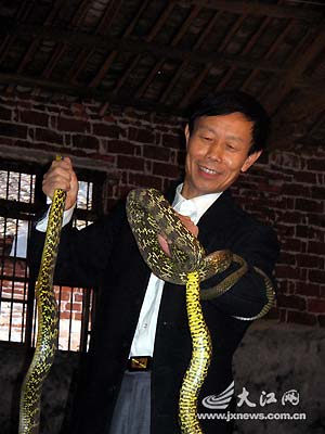 10月16日,本報(注:江南都市報)記者赴宜春向蛇王老黃拜師學藝,既感受了隨蛇王體驗抓毒蛇時的心驚膽戰,也聽到了蛇王驚心動魄的歷險故事。