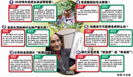 10月13日,各大媒體在重要版面刊登了周正龍?zhí)峁┙o陜西省林業(yè)廳的虎照。當(dāng)天上午,在各大門戶網(wǎng)站轉(zhuǎn)載后的新聞跟帖里,有人提出了“怎么看著這老虎這么不真實(shí)呢?”