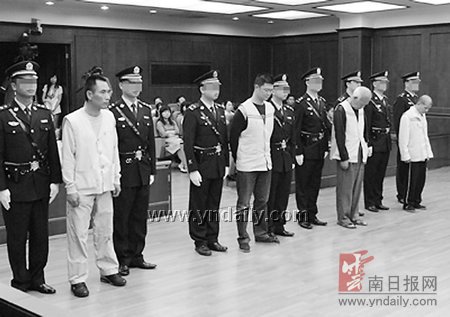 6月26日,昆明中院對臺灣省人鐘萬億販毒案依法作出一審宣判,以走私、販賣、運輸毒品罪判處主犯鐘萬億死刑,剝奪政治權利終身,并處沒收個人全部財產;判處被告人鐘溪洲死刑,緩期兩年執行;判處被告人王俊鵬有期徒刑15年;判處被告人劉文嵩有期徒刑15年。