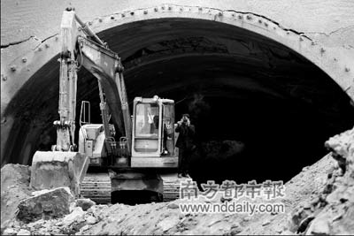 昨日下午,記者來到事發工地時,挖掘機正在清理塌方現場。據工地工人介紹,事故發生在凌晨3時左右,當時有3名工人在隧道出口處施工,由于躲閃及時,只有兩名工人在事故中受傷。事故發生后,轄區派出所和街道辦工作人員曾到現場勘測險情。