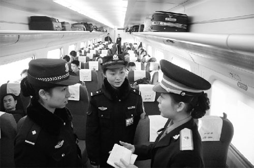 把乘警支隊的年輕女警全部投入到動車組出于什么考慮?對此,李鶴表示,動車組有和諧號之稱,對他們的服務更多地體現在執法環境的改變上。相對于男警,警花們更有親和力。她們的柔情執法、微笑服務更讓人難忘。
