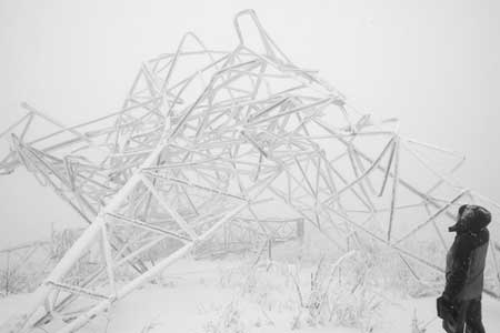 因大別山地區(qū)雪災(zāi)嚴(yán)重,三峽電力外送華東的大動脈——500千伏宜(湖北宜昌)華(上海華新)直流輸電線路受此影響,其中安徽金寨張沖段1146號~1153號線塔覆冰嚴(yán)重,導(dǎo)致4座500千伏線塔18日倒塌,這條電力外送通道送電因此中斷。我省送變電公司385名搶修人員已趕到現(xiàn)場進行搶修。