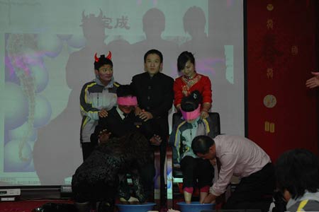 "跪著替員工洗腳" 老板特殊年終獎惹爭議(圖)