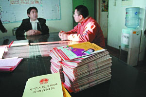在珠三角民間勞工維權機構,勞動合同法和自印的維權手冊是最常見的資料。記者 徐春柳 攝