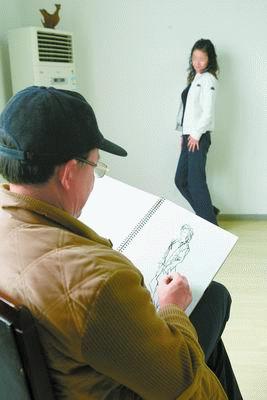 窗外,成都難得的陽光溜進簡單而干凈的畫室,照亮了秦華沉思的眼睛,溫暖著她線條清晰卻冷得有些發(fā)紅的身體(畫室經(jīng)常跳閘,負(fù)荷過大)。畫家把眼睛流連在了充滿人體之美的秦華背影上,手中的速寫筆在畫板上飛舞。秦華很專業(yè),她不斷變幻著姿勢和動作,在潔白的背景墻前輕舞美妙的身軀。畫家的靈感被一次次觸動,畫筆如飛,換下一張又一張畫好的速寫。
