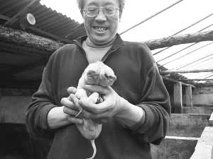付寶安介紹說:“這是我家大花豬頭一次產(chǎn)崽,第一胎就難產(chǎn),沒想到竟產(chǎn)出兩只腦袋的小豬崽!边@只小豬兩個(gè)頭的舌頭都好使,都能吃東西。“就是站不起來,總好像是偏重一樣。”付寶安說大花豬接著又連產(chǎn)13胎,都是正常豬崽。
