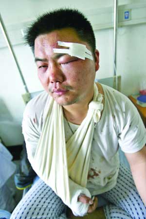 躺在病床上的王騏右手一直打著繃帶,面部依然腫得老高,左眉上的傷口也尚未拆線。經過三天多的消炎治療,王騏的斷臂終于消腫了不少,手術初步定于今天上午進行;而頭部和面部受傷的鄭毅,雖無須住院治療,但傷口處仍被紗布包著。這幾天,他一直在等著警方的調查結果和街道城管科的說法。