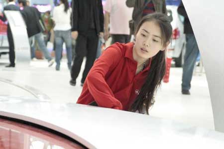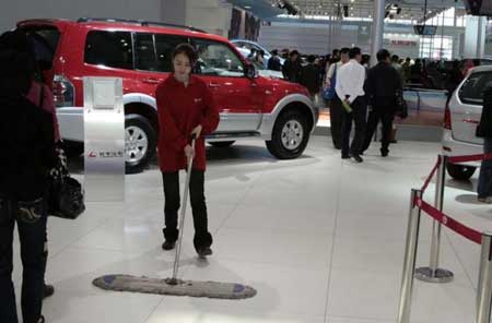 網友熱議北京車展美女清潔工 贊其現實版灰姑娘