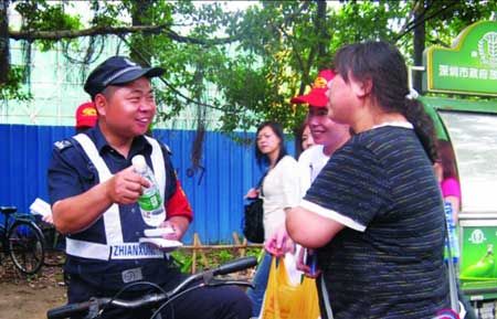 五一勞動節(jié)當(dāng)天,網(wǎng)友“柳的妞”等組織“給交警送瓶水”公益愛心活動,他們在車公廟、華強(qiáng)北等地向市民募集瓶裝水,然后分發(fā)給路上遇到的交警、城管、警察、環(huán)衛(wèi)工人等。據(jù)粗略統(tǒng)計,當(dāng)日在街頭募集和送出去的礦泉水接近200支。