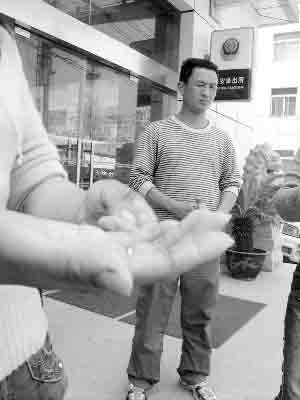昨天,王麗和小姑栗麗再次來到景明佳園內擺攤。上午11點,王麗準備到小區菜場買菜,不料剛走幾步遇上了前天和她發生沖突的一名城管人員,當即攔住對方。“我說手指被他弄得伸不直了,他竟然拽住我就打。”