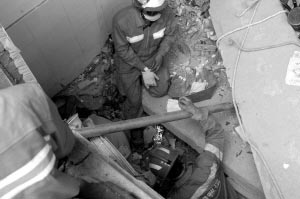樓板一塊接著一塊,在兩層樓板之間,月月和其他5名孩子被壓在一起。沒有空間,設(shè)備無(wú)法進(jìn)場(chǎng)!耙稽c(diǎn)一點(diǎn)地挖,想盡一切辦法營(yíng)救孩子!鄙讨拒妶(jiān)定地說(shuō)。