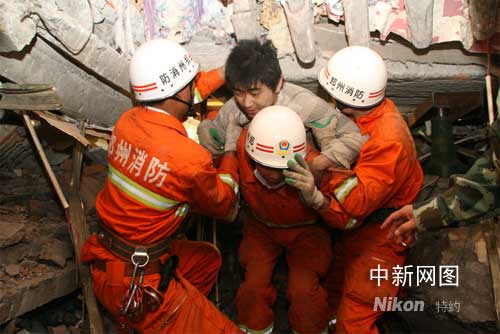 到十六日晚10時38分,經過8個多小時的連續奮戰,這名被困廢墟中的20歲男子被成功救出,而此時,他在廢墟中已被困了104小時,創造了生命的奇跡。他的名字叫李青松。完