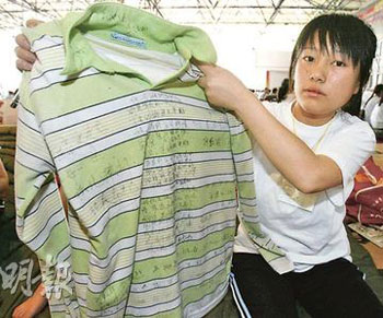 小姑娘身邊放著一件衣服,“我就是穿著它逃出來的,同學(xué)們都在上面留字鼓勵(lì)。”記者細(xì)心一看,污穢的間紋上寫滿“要堅(jiān)強(qiáng)活下去”、“踏實(shí)走好每一步”、“同生共死,永遠(yuǎn)的兄弟姐妹”。這就是年輕人,這就是北川的未來。