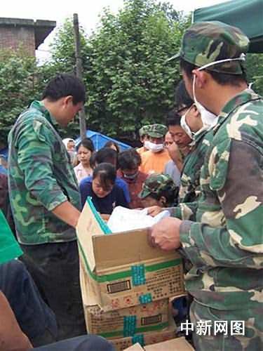 二十日,協助社區組織受災群眾領取救災物資時,有個小孩不停地哭泣,在一旁的聯隊隊員代慶平趕忙安慰逗他別哭。幾天以來,救助點附近的受災群眾已與這支救援隊變成了互相關心的鄰居。