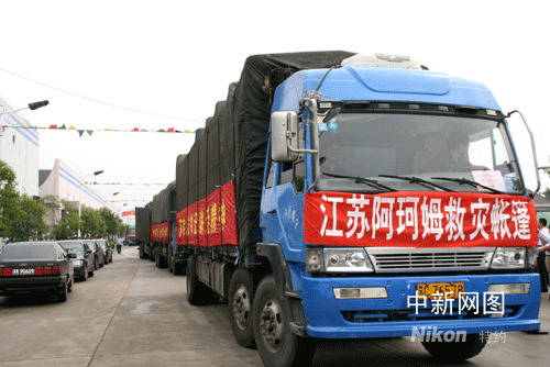 江蘇阿珂姆野營用品公司是中國最大的戶外帳篷生產企業,具有日產帳篷五千頂左右的生產能力,截止昨天,已累計發往四川災區三點五萬頂帳篷。目前正承擔著民政部下達的十二萬頂救災帳篷生產任務。為滿足抗震救災需要,連日來,該公司停下手中所有其他訂單的生產,加班加點趕制救災帳篷,到本月底日產量將可達六千頂以上。