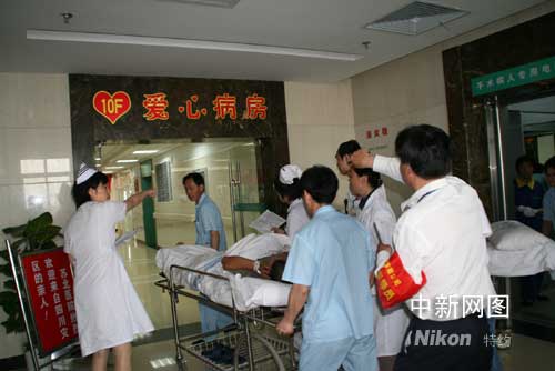 記者坐上載著傷員救護車,警車開道一路綠燈直達救治的醫(yī)院,在車上傷員家屬告訴記者:到處都是我們的親人,一路上大家都很受照顧,已經(jīng)感受到家庭的溫暖。下午四時許,駛進蘇北醫(yī)院,為了迎接傷員,醫(yī)院早就開始了準備,在住院十病區(qū)開辟了 “愛心病區(qū)”。王靜成院長稱,這是我們醫(yī)院最好的病房,醫(yī)院為四十名災區(qū)傷員親人配備了經(jīng)驗豐富的醫(yī)護人員,確保醫(yī)療安全,盡量降低致殘率,讓他們安心治病、早日康復。