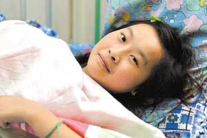 康潔是不幸的,不過康潔也是幸運的,5月15日當晚,手系著紅色絲帶的康潔被解放軍抱上了飛機,直接送到成都的四川省人民醫院接受治療!皨寢尞敃r沒有和我一起去成都,我擔心極了。”不過第二天,楊秀香就翻山越嶺地走了10多個小時來到成都。母女倆在四川省人民醫院相見的時候,女兒的左腳的手術已經成功完成。