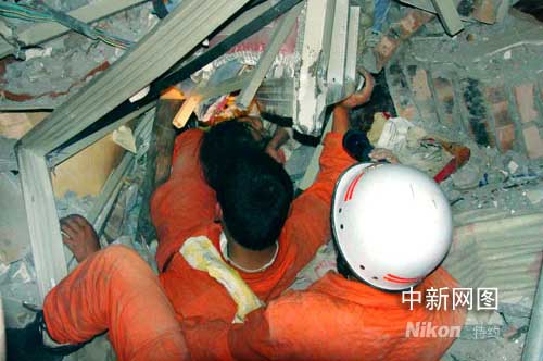 5月16日下午2時,身處汶川抗震救災最中心地區映秀鎮的濰坊市公安消防支隊特勤中隊指揮員吳永康,帶著音頻生命探測儀與兩名協助戰士一寸一寸的在廢墟中搜尋被埋壓群眾。突然間,一陣斷斷續續、似有似無的女聲通過耳麥傳入吳永康耳中。這里有生命!一陣莫名的驚喜頓時涌上吳永康的心頭,他對著廢墟大聲喊話:“這里有人嗎?如果能聽到的話就大聲說一句。”這時,下意識屏住呼吸的他,耳中清清楚楚的傳來四個字——“我在下面”......