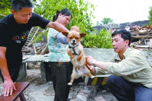6月的第一周,一群來自北京的志愿者,在地震重災區之一的綿竹遵道鎮,展開了針對動物防疫的救援行動。