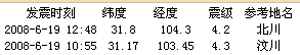 又訊:今(19)日12時48分,北川( 31.8 104.3)發生4.2級余震。