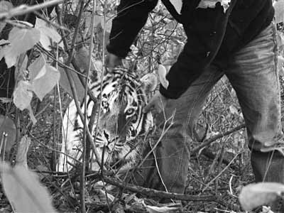 工作人員模擬當時拍攝“虎照”情景