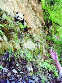 近日,馬先生一行5人來(lái)到太白縣考察生態(tài)農(nóng)業(yè)項(xiàng)目,7月5日上午,他們從太白縣城出發(fā),前往黃柏塬鄉(xiāng)。上午10時(shí)30分許,車(chē)駛出30多公里時(shí),馬先生看到路邊有群人圍著什么東西,順著眾人的視線看到,離地面大約4-5米的崖壁上竟有一只大熊貓。一行人喜出望外,他們從來(lái)沒(méi)有想過(guò)自己還有緣看到野生大熊貓,于是放下手頭的工作加入到守護(hù)大熊貓的行列中。