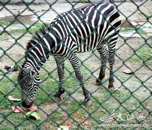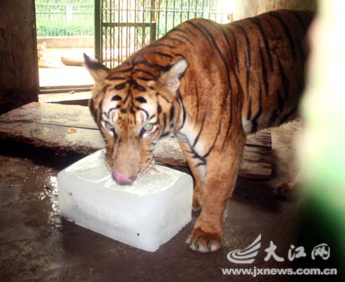16日,記者在南昌市動物園看到,老虎正抱著大冰塊睡著大覺。“天氣太熱,我們每天都要消耗近600公斤冰塊為5只老虎降溫。3只大象每餐也要吃掉約75公斤西瓜!憋曫B員告訴記者。記者看到,河馬喜歡泡在水池里,熊貓則躲在空調房里愜意地打著盹,大象、斑馬忙著啃西瓜。