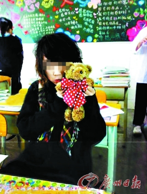 其中,富家女個人的多張照片是這名富家女舉著手機自拍的。照片中的富家女長頭發,看上去比較年幼可愛。一張她抱著玩具熊的合影則是在教室中拍的,身后還有黑板報。