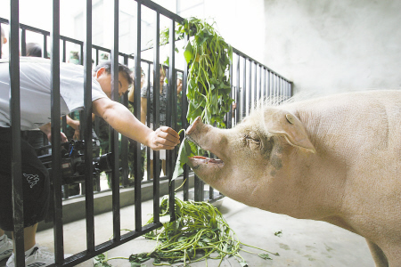 此外,著名的“豬堅強”也受到了大家的特別關注。據飼養員介紹,剛來時“豬堅強”已經瘦到140斤,他們每天給它喂綠豆稀飯,現在已經長到300斤左右了。 (四川新聞網-成都商報記者 肖剛 實習生 龐無忌 攝影 王勤)