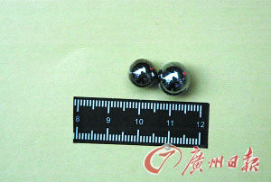 這就是打破汽車玻璃的兩顆鋼珠。邵權達 攝
