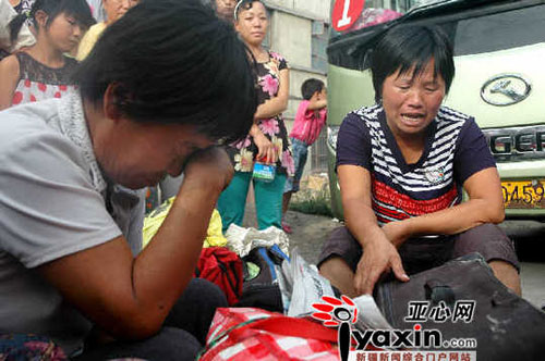 李志峰與老鄉們坐在包裹上,在他們身后,是一輛客車。這輛曾準備載他們前往精河拾棉花的客車,現在卻被他們“扣留”了,原因是農民工們懷疑客車司機與之前毒打他們的幾名男女是同伙。