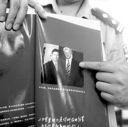39歲的翁鵬宇是廣東省韶關市人,現任電白縣政協常委。自己成立了深圳農正飼料公司,后變更為柏屋保健品有限公司,專門銷售紅豆杉保健品。2008年之前,考慮到陜西紅豆杉資源豐富,就在西安找了家代理商,生意始終特別差!2007年底我本打算退市,偶然碰到了朱麗華,她說有老人覺得產品好,建議我改變現有銷售方式!蔽贴i宇說,自從西安分公司成立以來,多次來西安,以整合經濟學家身份,向大家介紹產品的好處,還發放印有與克林頓合影的材料。