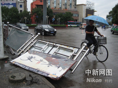 9月29日,浙江臺州一人行道護欄被風吹倒。陳林聰 攝
