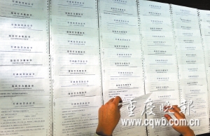 高速公路執法隊員整理“渝B27123”貨車超載處罰通知書的存根