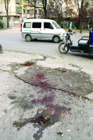 12月4日下午3點,山大路與解放路交會口向南,路西一家飯館門前,人行道上的地面雖已被人用水沖洗,但一大攤鮮紅的血跡依舊扎眼。