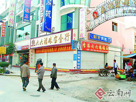 離開第一個報案現場,記者沿路來到位于云縣迎新路上的金店,這里距離第一個報案現場——北河橋涵洞的直線距離不到1公里。昨天中午,還有很多警車停放在現場,由于此地是云縣縣城的中心地帶,周圍商鋪眾多,圍觀群眾特別多,F場,拉起的警戒線范圍包括了金店及旁邊的一家商鋪。案發金店的幾道防盜卷簾門緊閉。