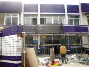 工人們準(zhǔn)備重新裝修發(fā)生火災(zāi)的石林派出所