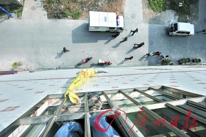 附近一居民袁先生指著地面上的血跡和樓上垂下來的繩索稱,昨天夜里兩名少女就是從那里的鐵窗中爬出來時,其中一人在下滑過程中,從半空中墜落下來,發出一聲悶響。該少女整個人趴在地上,大聲喊:“救命!痛!”隨后,被送往當地醫院救治,而另外一名少女則慌忙跑到路口的一家酒樓,“我們見到她時,渾身發抖,手都拿不穩水杯。”