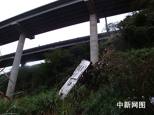 據(jù)韶關(guān)市交警部門通報(bào),二月二十八日上午,河南省鄭州市一輛掛豫R三八五二二號(hào)牌的雙層臥鋪大客車,從河南省南陽(yáng)市搭載乘客四十三人前往東莞,三月一日凌晨三時(shí)四十六分,途經(jīng)京珠高速公路粵北段南行七十九公里+二百米處時(shí),遇見前方路面情況,采取制動(dòng)及避讓措施時(shí),碰撞左側(cè)約零點(diǎn)六米高護(hù)欄后,沖出高架路外,掉下約五十米深山溝,所幸在半坡處被巨大的橋柱擋了一下,才未跌落谷底。