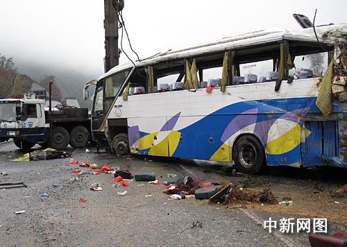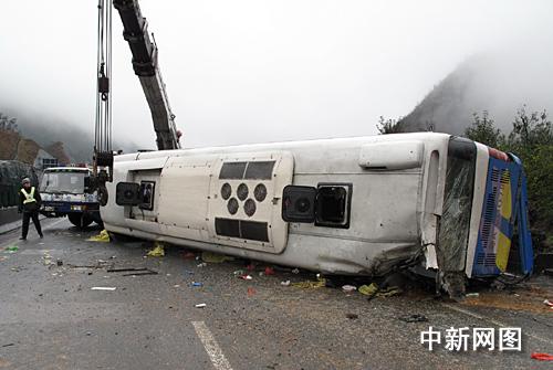 據(jù)韶關(guān)警方稱:這輛牌號(hào)為粵AC00七九號(hào)豪華大客車(司助兩人),是六日凌晨五時(shí)從廣州羅崗搭載游客四十人(其中一名導(dǎo)游)前往湖南衡山的。于八點(diǎn)五十分途經(jīng)京珠高速公路粵北段北行三十七KM處時(shí),車輛碰撞右側(cè)花基后向左側(cè)翻,造成駕駛員岑權(quán)(男)及兩名乘客(一男一女)當(dāng)場(chǎng)死亡,無人員重傷,十七名乘客輕微傷(均已送醫(yī)院檢查治療)的交通事故。